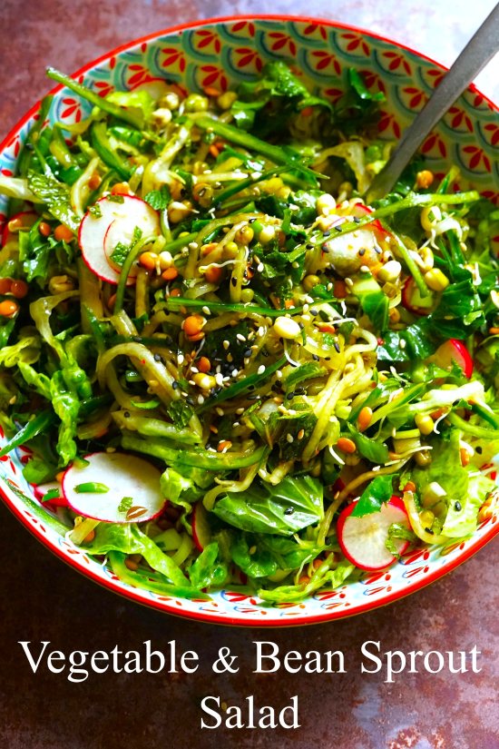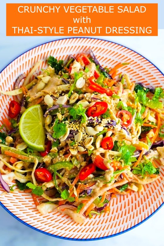 To turn bang bang chicken into a main meal salad, I add not just noodles and the traditional cucumber, but lots more fresh veggies too. Any good and crunchy raw vegetables you like will work.