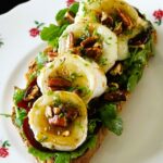 The first time I made Beetroot and Goat Cheese Toasts, I couldn’t believe just how much I enjoyed it. After all, I’d eaten all the ingredients before many times. But there was something almost perfect about this particular combination. Tangy, toasty cheese, earthy beetroot, pleasantly bitter rocket, crunchy pecans, and lightly oniony chives, all brought together with sweetish, garlic Balsamic dressing.