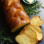 Braided Herb Bread, or Plaited Herb Bread, is a deliciously soft no-knead yeasted loaf made with a dough enriched with butter, eggs, and milk. I love it flavoured with chives and rosemary, but you can swap in your favourite aromatic herbs such as thyme or basil. Wonderful as a side to soups and salads, meats and cheeses. Or just spread with butter for a moreish savoury snack.