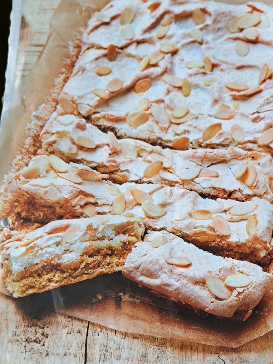Unusually, the recipe I’m sharing today is not one I’ve created myself. I came across Mary Berry’s Coconut Meringue Slices in the now defunct Delicious magazine, in 2021, I think. And very inviting they looked with their golden sponge base and topping of crispy, coconut-flavoured meringue scattered with flaked almonds.