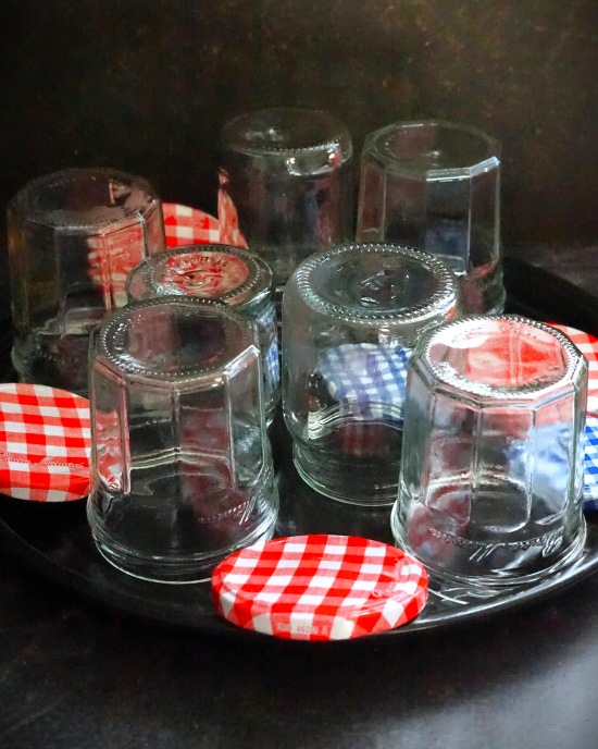Wash 2 large or 4 medium jars with screw-on lids in hot, soapy water (it's sensible to also prepare a few extra of various sizes in case you need them). Rinse and leave to drain.